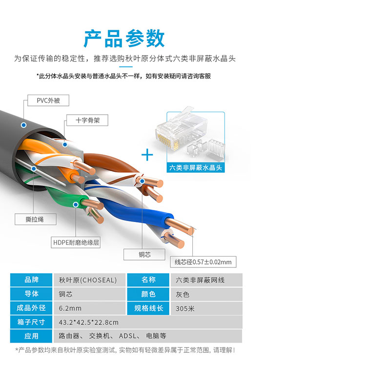 产品特点:采用优质铜材,保证产品优良的拉伸性能和电阻性能;优化设计的高速线缆齿形护套、节距技术、高速线缆生产工艺。支持500MHz 测试带宽 产品全面符合 REACH 和 RoHS 要求